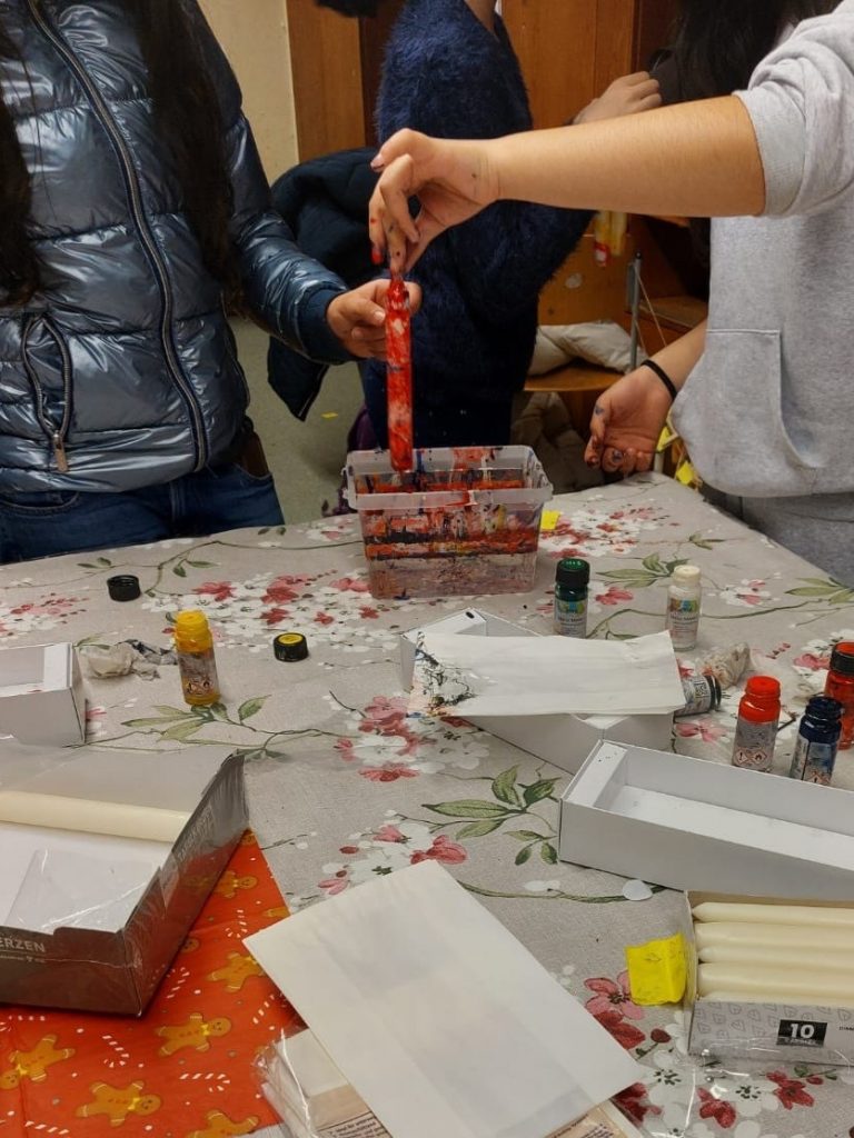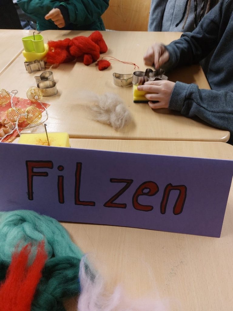 Beim diesjährigen Lichterfest herrschte eine besonders warme und gemütliche Stimmung. Unsere Übermittagsbetreuung brachte mit liebevoll vorbereiteten Mitmachangeboten viele Kinderaugen zum Leuchten: Gemeinsam wurden bunte Filzarbeiten gestaltet, weihnachtliche Karten beschriftet und marmorierte Kerzen hergestellt.